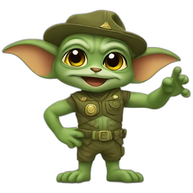 A full body image of a cute gremlin named gizmo that is smiling emoji