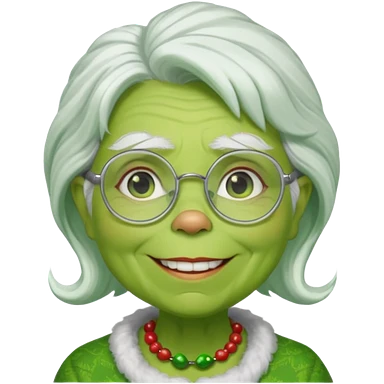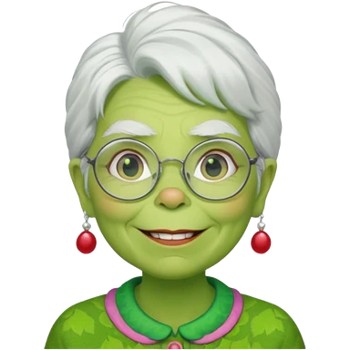 Grinch grand mother with white hair and with glasses emoji