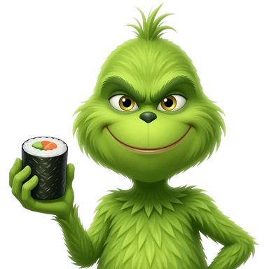 I want the grinch but has a bow ont he top of its head and is eating a cookie emoji
