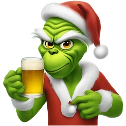 Grinch with Santa hat and a beer emoji