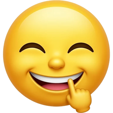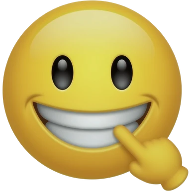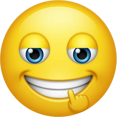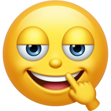A smug yellow face smiling grinning cheeky with finger in mouth smiling showing teeth grinning happy but cheeky vibe emoji