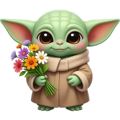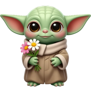 grogu holding flowers with transparent background emoji