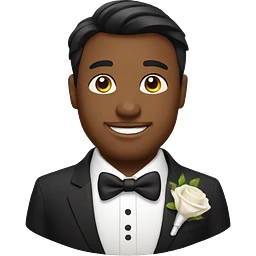 Groom with dark scruffy hair and beard and glasses pale skin and black tux emoji