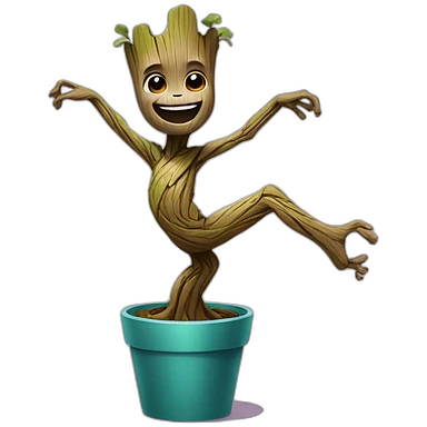 Groot thinking, surrounded by question marks, with his hand on his chin emoji