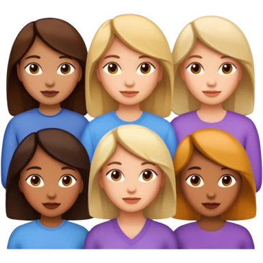 group of different women. With one blonde girl in middle with blue glasses emoji