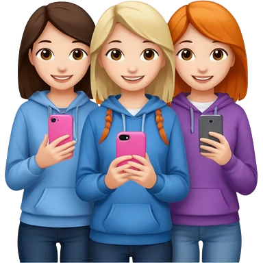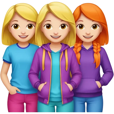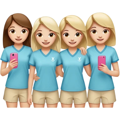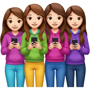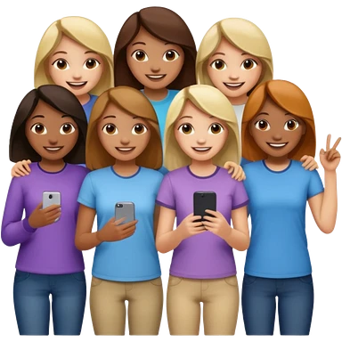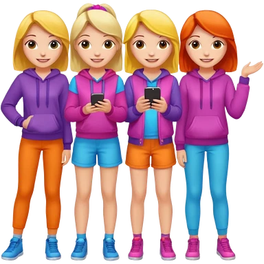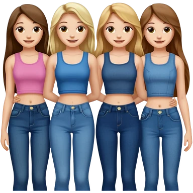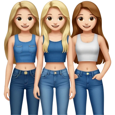 group of cute teenage girls with long hair in crop tops and jeans emoji