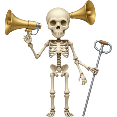 HEADLESS SKELETON BUT A ROD ON THE HEAD PLACE ON THE ROD THERES TWO MEGAPHONES ON OPPOSITE SIDES ON THE ROD emoji