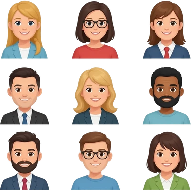Group of 40yo friends whose passion is going for walks. All have short hair and one has white hair. iOS emoji style emoji