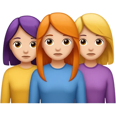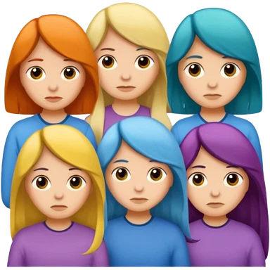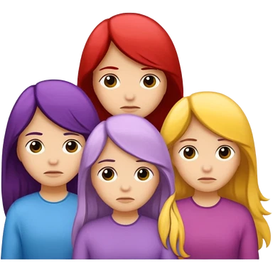 grupo de 5 amigos tristes diferentes colores de cabello emoji