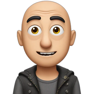 Gru from despicable me. mean looking bald man. pointy nose. stripy scarf in grey emoji