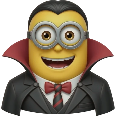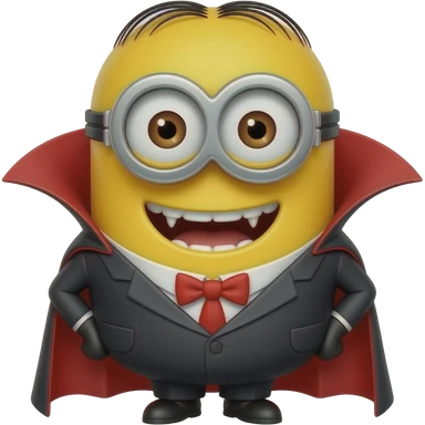 Felonious Gru from Despicable Me dressed as a friendly, heroic vampire emoji