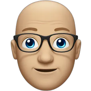 grumpy bald man with round glasses with navy sweater with blue eyes emoji | AI Emoji Generator