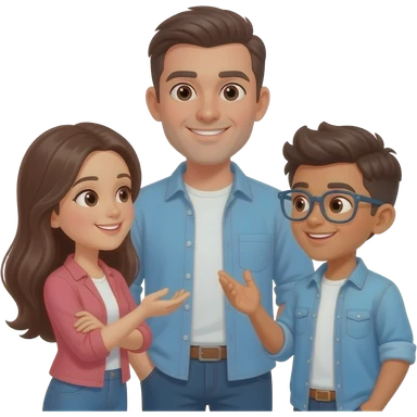 grupo de personas hablando. que incluya un hombre una mujer un joven. que se note diferencias fisicas emoji
