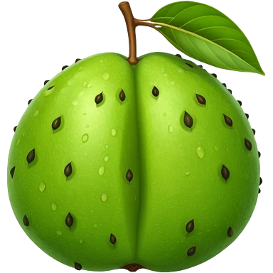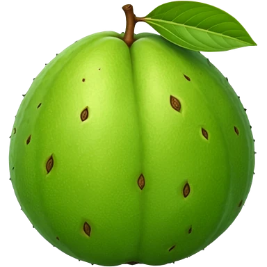 Angry guava fruit character with furrowed eyebrows and grumpy expression emoji