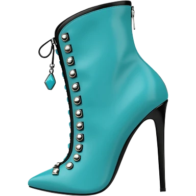 Hyper Realistic isolated side view, Michael Kors turquoise and black stiletto ankle bootie boots, detailed side zipper and embellishments emoji