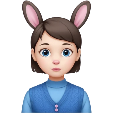 make a girl hair short and wear bunny skin pale ok and wear Sweater vests blue and make little bit a younger emoji