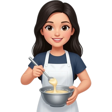 Fazendo bolo com a massa mole ainda menina cabelos preto longo emoji