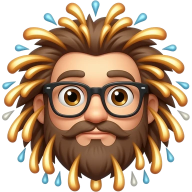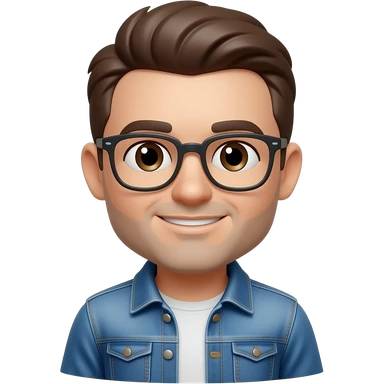 Apple memoji style 3D emoji, short curly dark hair, brown eyes, transparent glasses, hoop earrings, lip piercing, neutral serious expression emoji