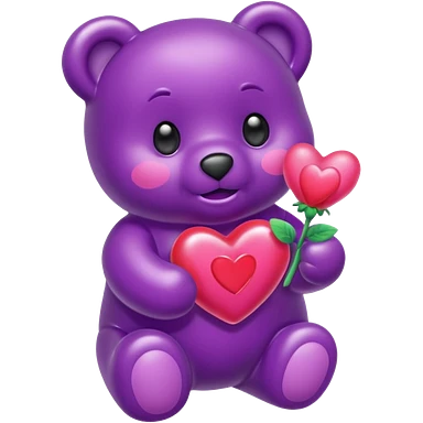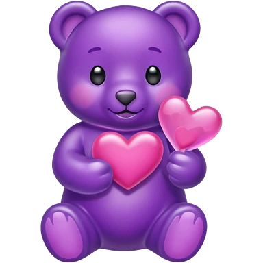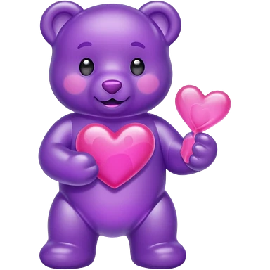 Gummy beart morado agarrando un corazón rosa cute emoji