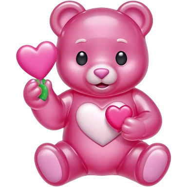 Gummy bear blanco agarrando un corazón rosa cute emoji | AI Emoji Generator