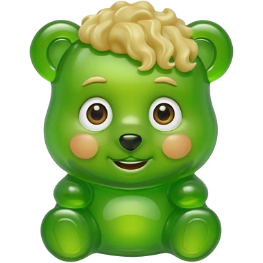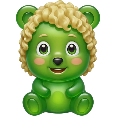 green gummy bear with eyes and blond curly hair only head emoji