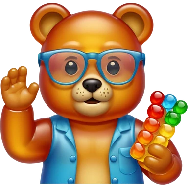 gummy bear with glassess, only head and arm emoji | AI Emoji Generator