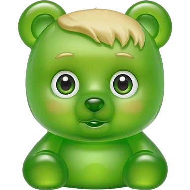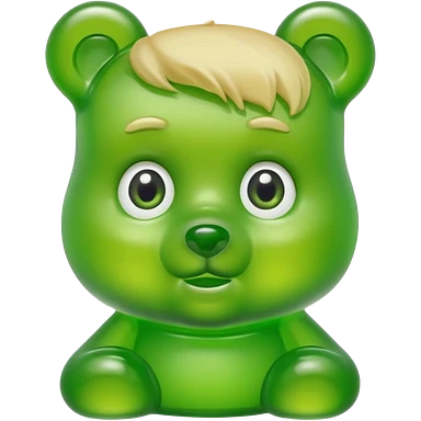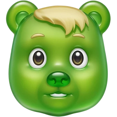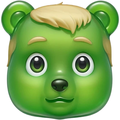 green gummy bear with eyes and blond hair only head emoji