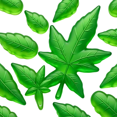 glossy green gusher gummy in the shape of a weed leaf emoji