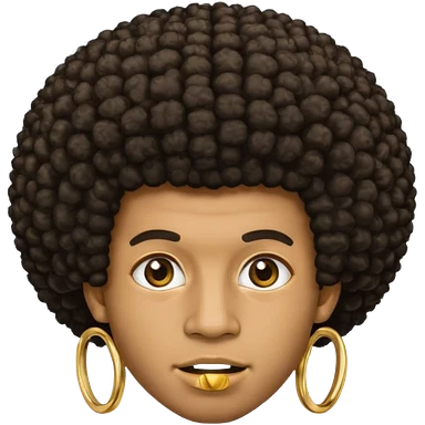 Black seventeen man with a afro haircut and grillz in his teeths emoji