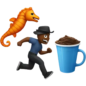 Robbers chasing a blue milkshake and a orange seahorsw emoji
