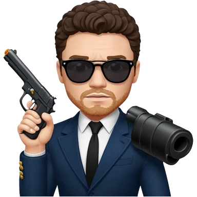 Richard Madden as his character in the Bodyguard TV series, with sunglasses on and a gun in his hand. emoji