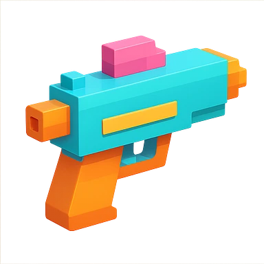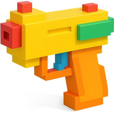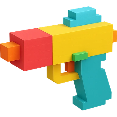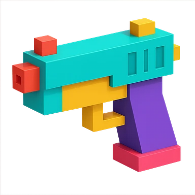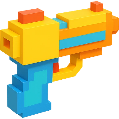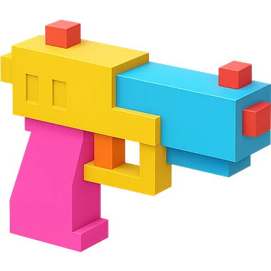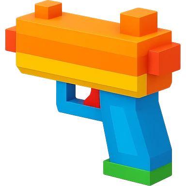 A grizzly bear with a chain and a money gun, voxel style, facing right emoji