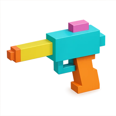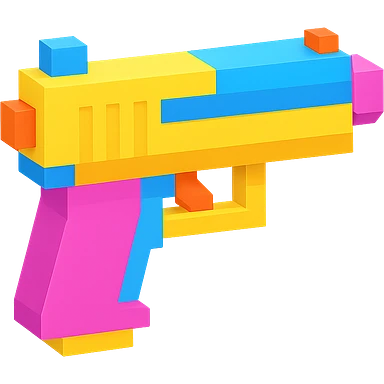 A grizzly bear with a chain and a money gun, voxel style, facing left emoji