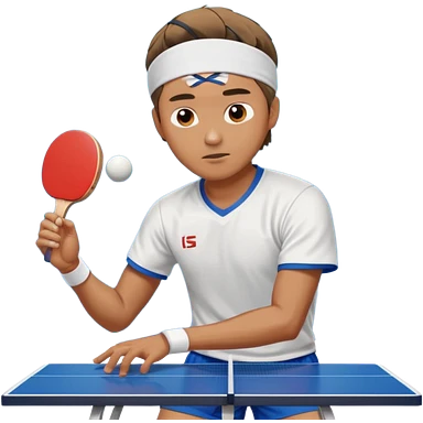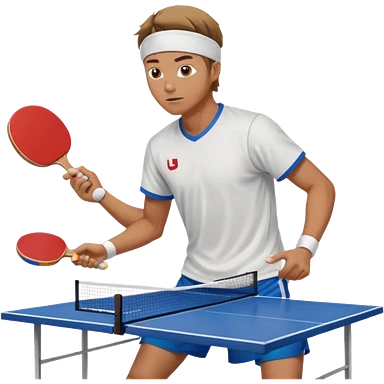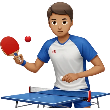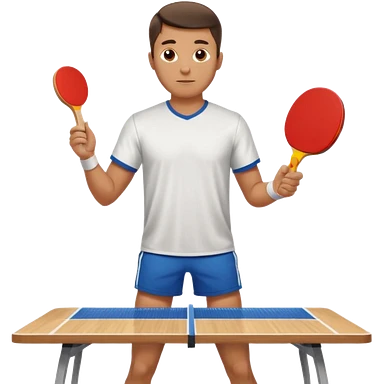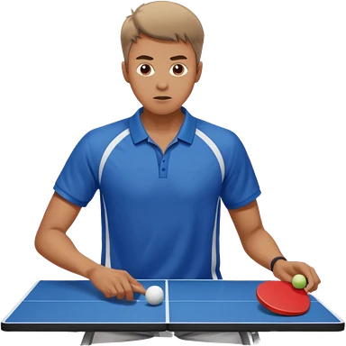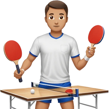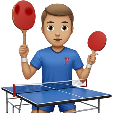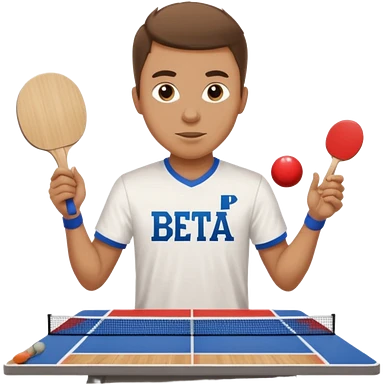 Guy playing ping pong on a 4x8 wooden table no net and only one paddle wearing a frat shirt with the letters beta theta pi on the front emoji