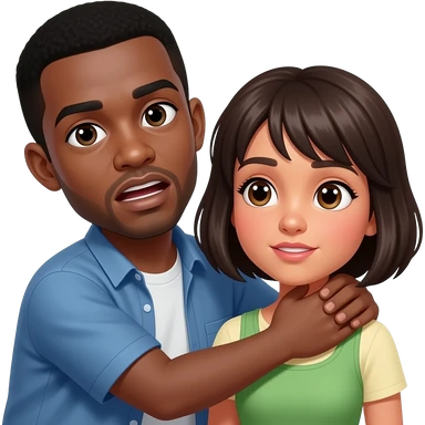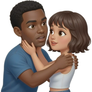 Black Guy choking around the neck of mixed girl with short hair emoji