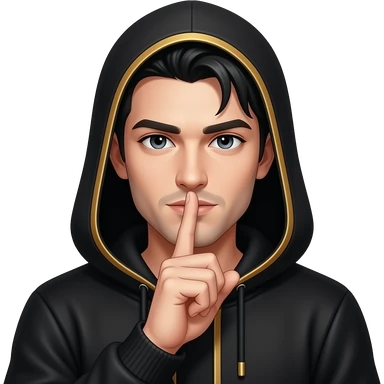 Dark Gothic guy golding his index finger over his mouth shushing emoji