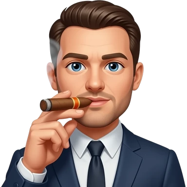 a guy with hazel eyes and slicked back brown hair stay with a lighter and a cigarette in his mouth with a sly expression on his face emoji