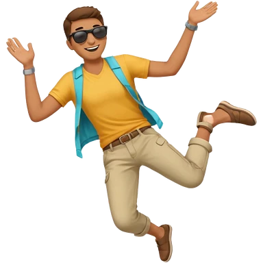 Colorful emoji. A skydiver free-falling through the sky, with a brightly colored parachute open above them. The background features a vast blue sky dotted with fluffy clouds, birds soaring nearby, and a plane flying off in the distance, emphasizing the thrill and freedom of the sport. emoji