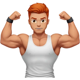 Redheaded muscular guy in a tank top in a double bicep pose emoji