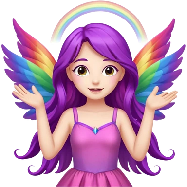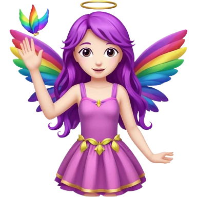 Female fairy Long purple hair Pink dress Rainbow wings Waving emoji