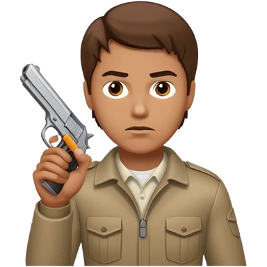 guy w medium long brown hair and blue eyes with gun to head emoji