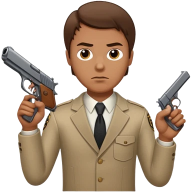 A blonde guy with blue eyes and blue shirt holding a gun emoji