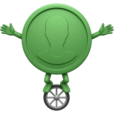 Tek teker üzerinde dengede durmaya çalışan, kolu ve bacakları olan bir yeşil düz kağıt para emoji