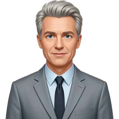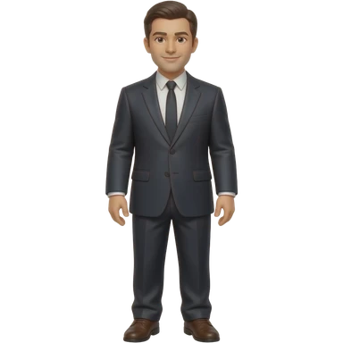 figure of Emmanuel Macron with an oversized head and small body, standing, wearing a dark navy suit and red tie, highly recognizable face, simplified details emoji