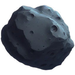 Cinematic Realistic Asteroid – A massive, irregularly shaped rock floating through the void, its cratered and pitted surface showing signs of ancient impacts. The harsh light from a nearby star reveals detailed textures and rugged, jagged edges. emoji