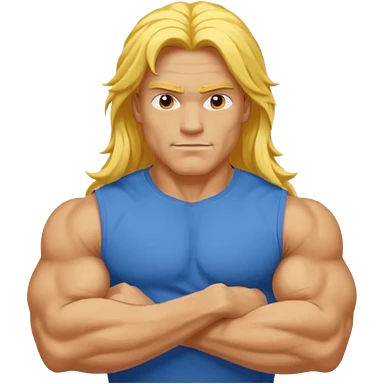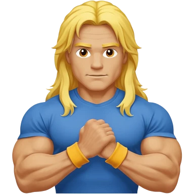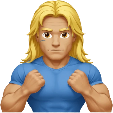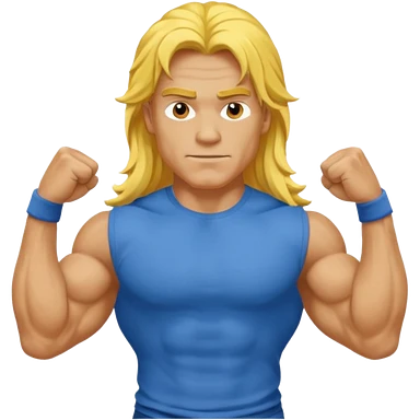 guy with biceps, long yellow hair, blue t-shirt emoji