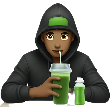 chill guy with black hoodie and black cap drinking matcha from a plastic bottle emoji