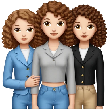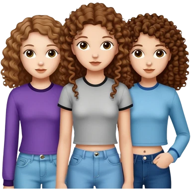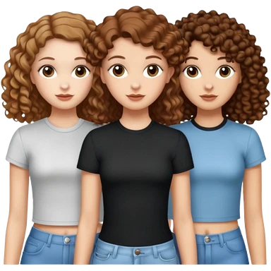 Three white girls, all of off this with brown hair but one whit straight one whit curly and one whit very curly emoji