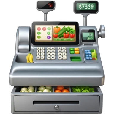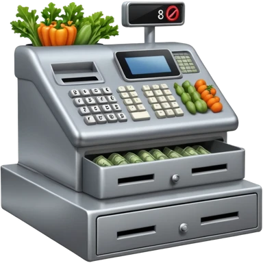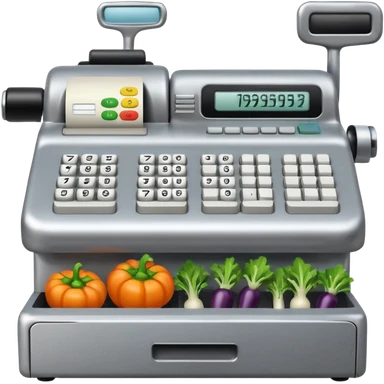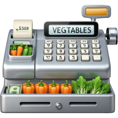 Front-facing cash register with symbol keys for vegetables emoji
