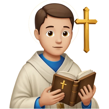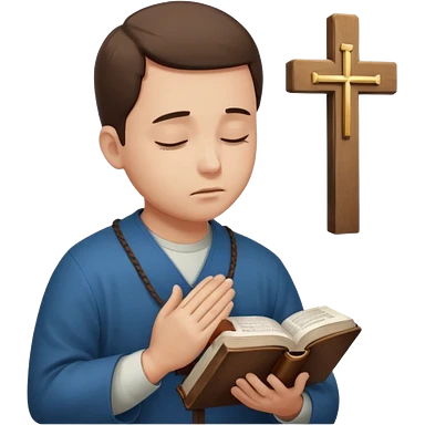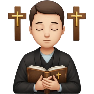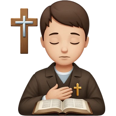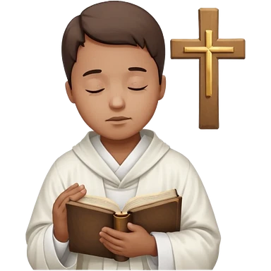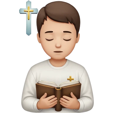 Guy who reads Bible with cross on it and with his eyes closed in prayer. without something in the background emoji | AI Emoji Generator